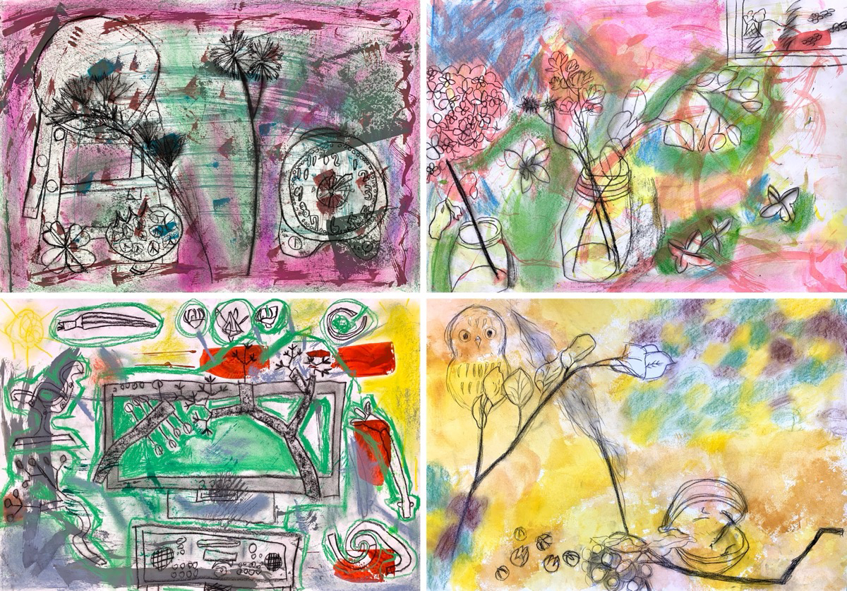 小学生 絵画/秋の光・家・ドライフラワー
